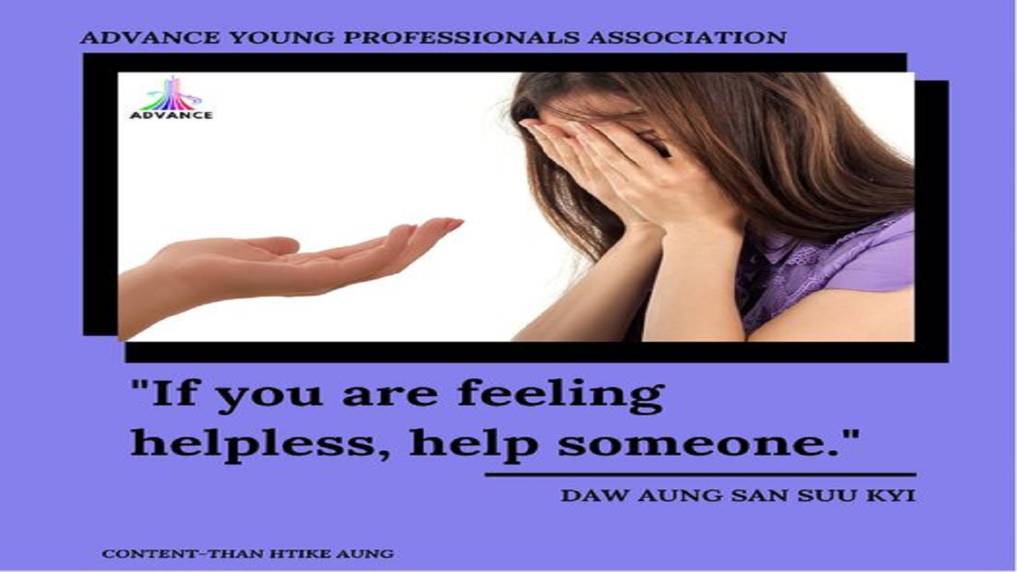 “ ကူကယ်ရာမဲ့နေတယ်လို့ ခံစားနေရတဲ့အခါ တစ်စုံတစ်ယောက်ကို ကူညီလိုက်ပါ ” ဒီစကားကို လူထုခေါင်းဆောင် ဒေါ်အောင်ဆန်းစုကြည်က ဆိုခဲ့ဖူးပါတယ်။ ပုံမှန်အချိန်မှာ ရိုးရိုးစာတိုကလေးပဲလို့ ထင်ကောင်းထင်နိုင်ပေမယ့် အခုလို အကြပ်အတည်းပေါင်းသောင်းခြောက်ထောင်နဲ့ ရင်ဆိုင်လာရတဲ့အခါမှာတော့ သည်စကားဟာ ဆက်စပ်တွေးတောစရာ